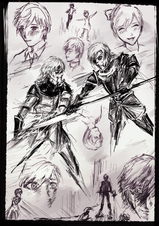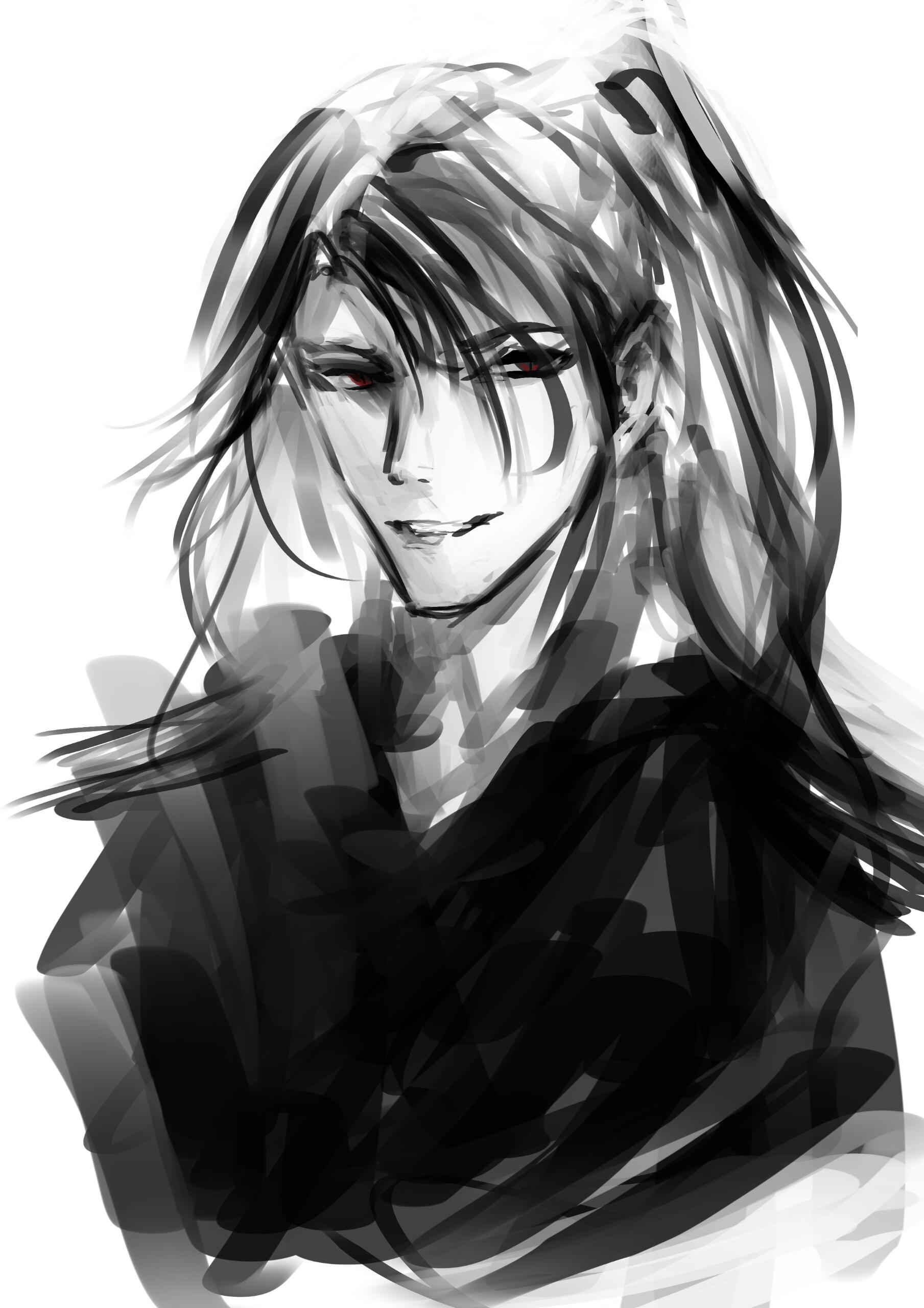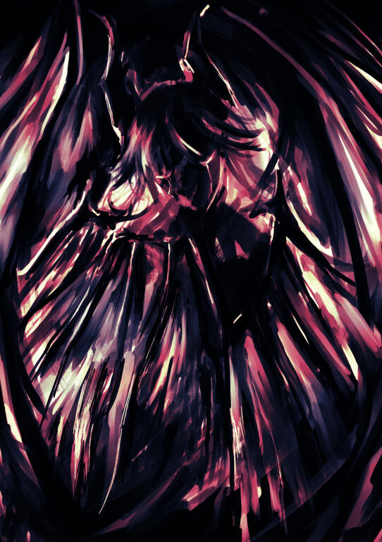 Usually, I start off with making a rough draft. This is done by sketching my main subject in my head very loosely and blocking in their silhouette. When I'm satisfied with my rough draft, I draw a refined sketch on top of it. After the sketch is refined, I begin to focus on lighting. I block in black and white values below the refined sketch. Then, I carve details on top sketch. This process continues until I feel that I have reached a point in which I feel that I'm ready to render in the colors. I often use Gradient Maps, and the Multiply and Overlay blend modes for coloring.